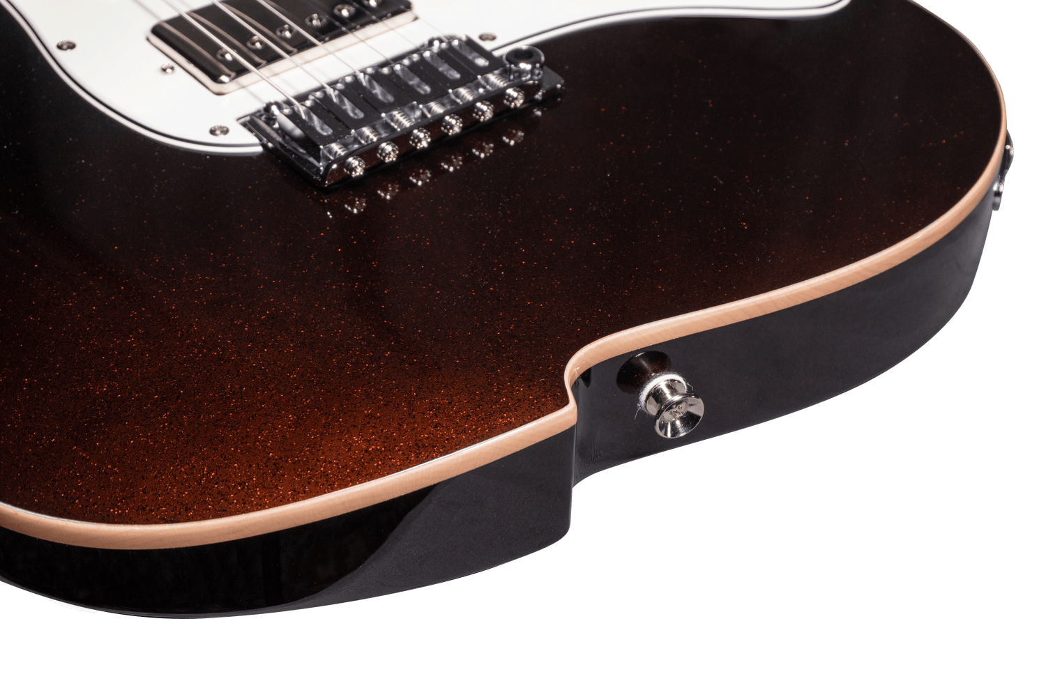 Featuring a beautifully scaped natural binding, complimenting the root beer sparkle gloss finish. The maple cap provides a brightness to contrast the rich tonality that the mahogany body offers. This model exclusive approach brings a distinctive personality to the instrument.