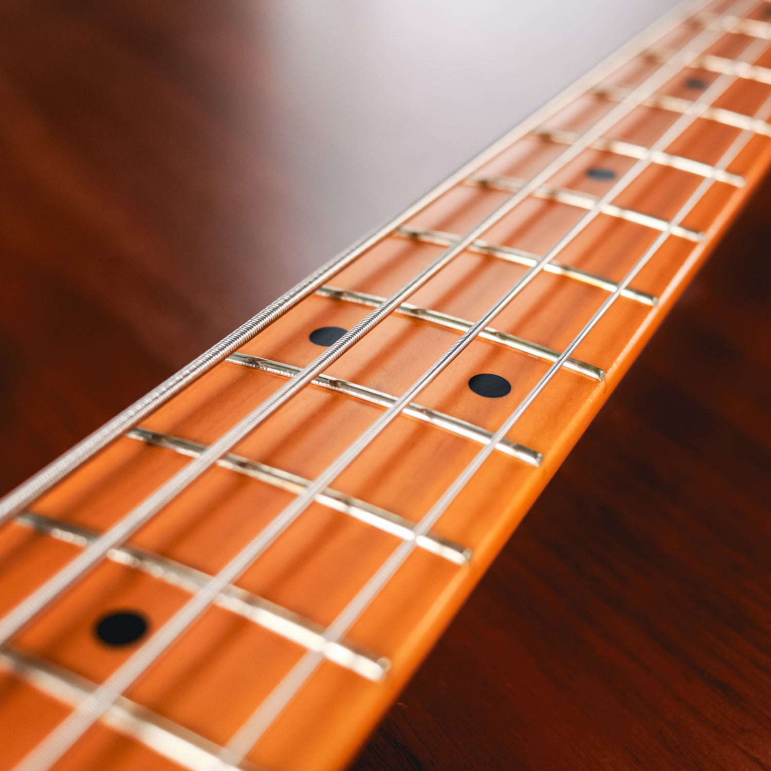 The ergonomic alder body is the perfect weight and construction, sitting comfortably and offering a balanced playing experience. A beveled lower cutaway provides seamless access to the entirety of the fingerboard.