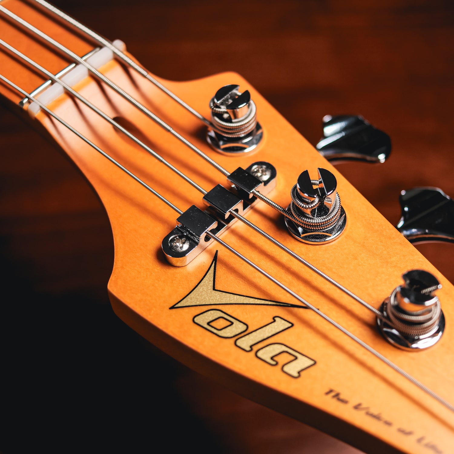 The Vola PB4 neck and Vola JS4 Bridge pickups are meticulously crafted to deliver a harmonically rich and versatile tonal palette for the instrument. These pickups offer clear, dynamic sound, making them a perfect choice for musicians seeking a wide range of expressive tones.