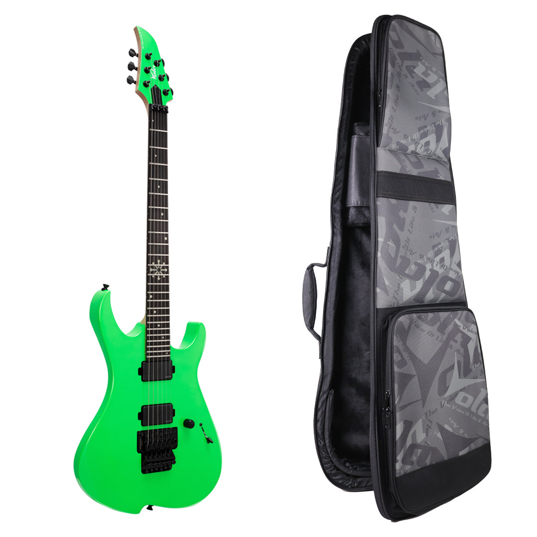 Designed in collaboration with metal titan Michael Keene of The Faceless, this powerhouse of a guitar has appropriately been dubbed “The Keene Machine”. With a sleek demeanor and crushing authority, it was created for uninhibited speed and grit. Perhaps its most notable feature is the integration of a GOTOH 1996T tremolo system, allowing you to raise or lower the pitch with intensity and accuracy. Another key feature is the installation of two Fishman Fluence pickups, which are complemented by a push/pull pot that allows two unique voices between the Fluences and can be expanded upon with the 5-way super switch. Aesthetically, the Alder body is finished with with a custom Keene Green Gloss. The ebony fingerboard is crafted with Vola Eye of Life inlays as well as a signature “Chaos Star” inlay on the 12th fret. If you are searching for a guitar that pushes the envelope in every capacity, look no further.