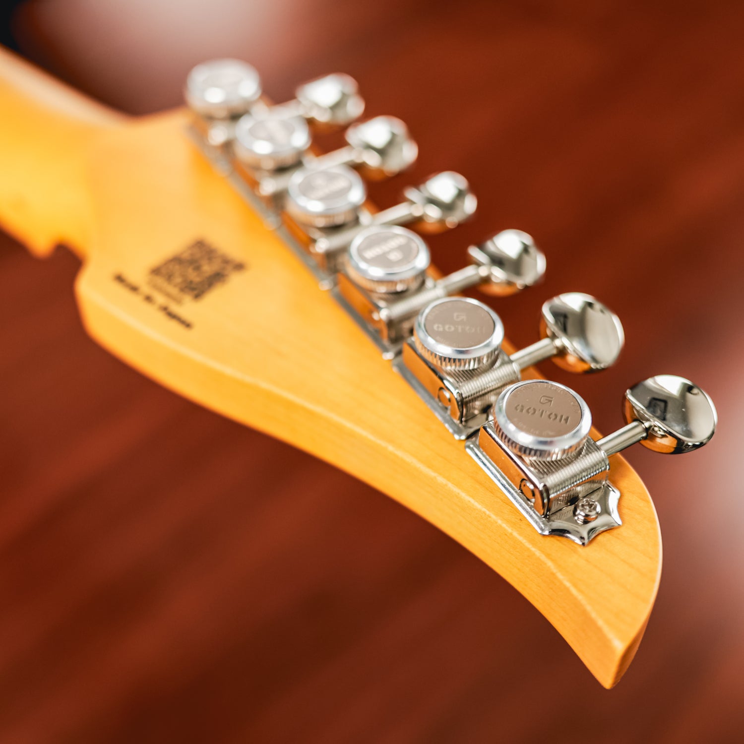 Equipped with the Ti-TC1 bridge from Gotoh with stainless steel saddles. Providing unmatched stability while maintaining that classic vibe. Makes adjustments that much easier.