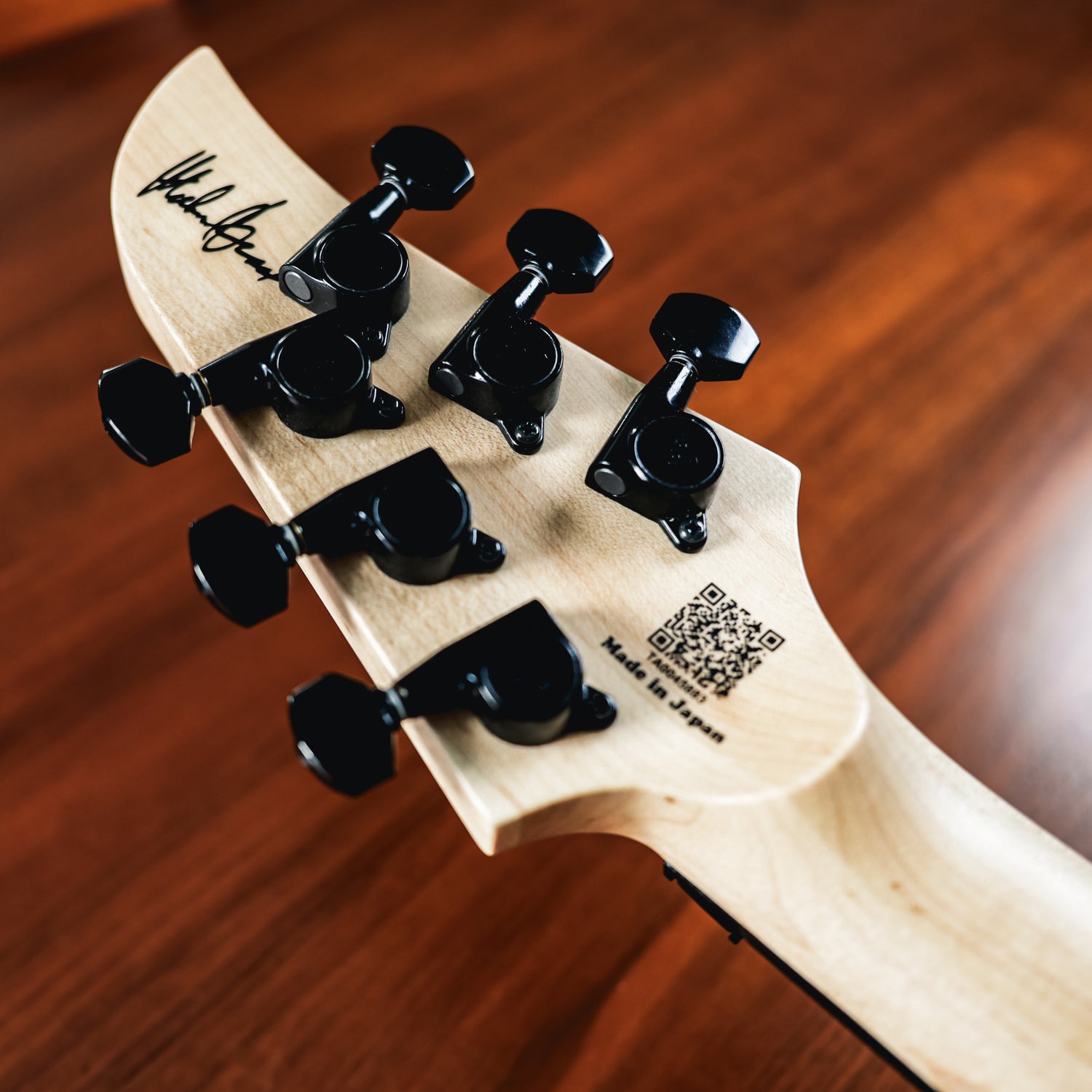 The well-balanced aesthetic of the 3x3 headstock offers equal parts form and function. Black Gotoh tuners line either side for pinpoint tuning accuracy and reliability. The symmetrical layout accounts for even string tension and distribution, creating an exceptional playing experience.